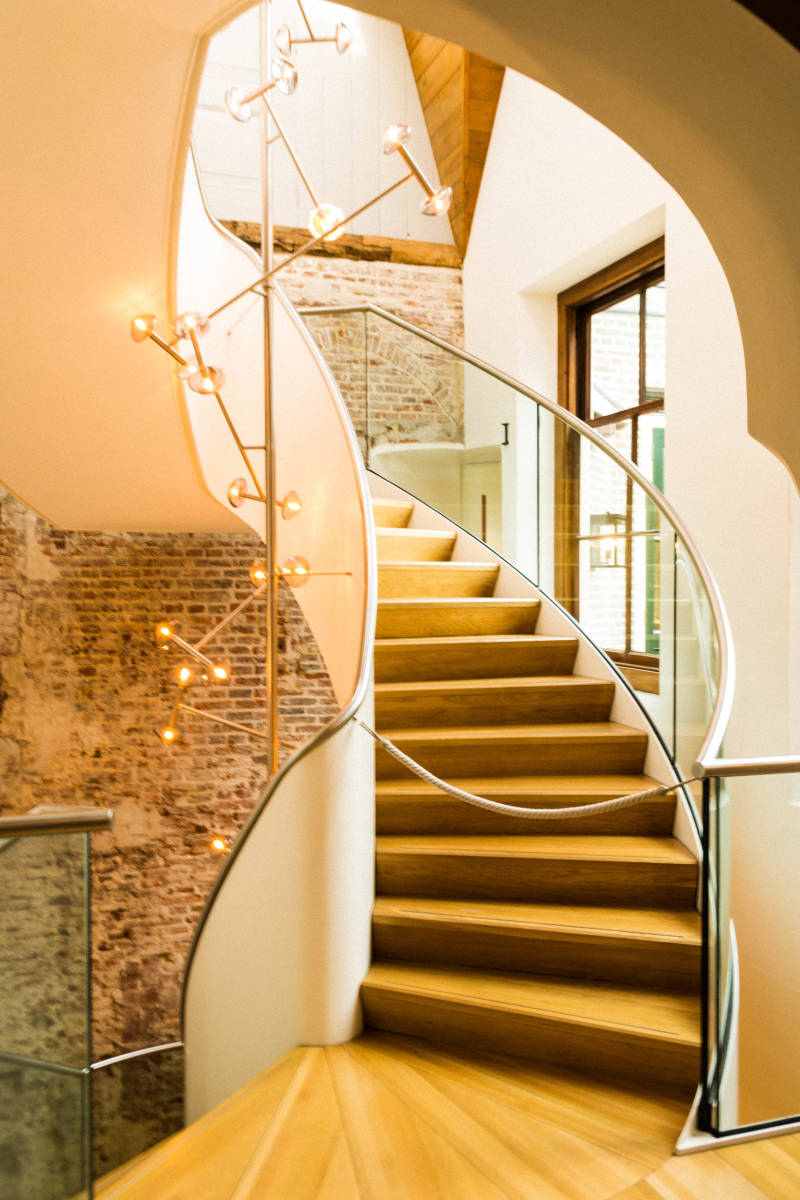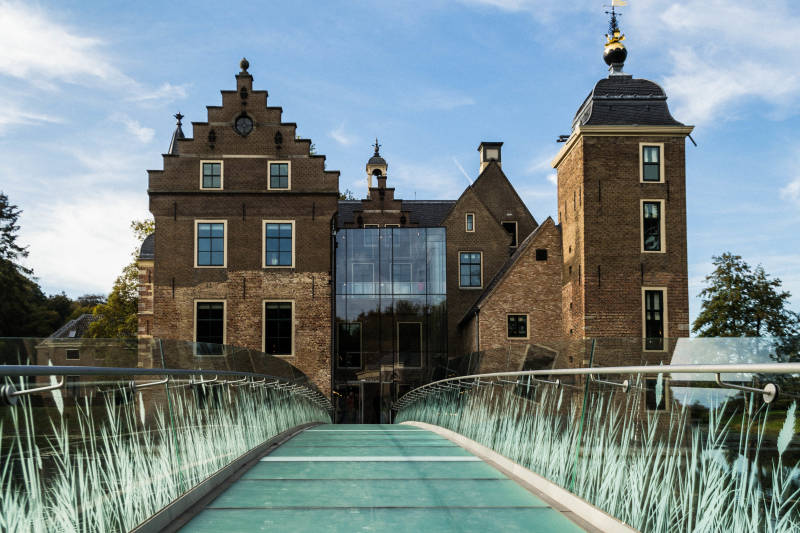 Bijzonder aan het kasteel is de glazen brug die vanaf het park toegang geeft tot het kasteel.