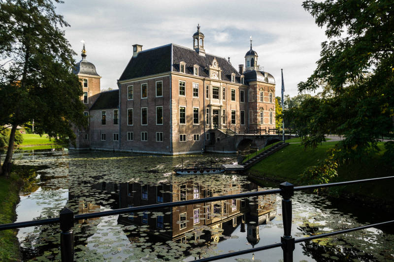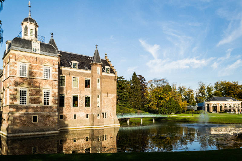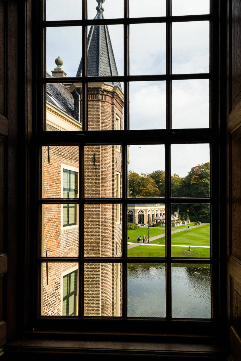 Het museum is gerestaureerd met moderne materialen. Zo zijn oud en nieuw met elkaar verbonden. Rechts uitkijk over de vijver met blik op de orangerie.