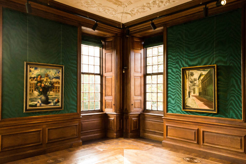 Een van de oude originele kamers in het kasteel met werken van Carel Willink.