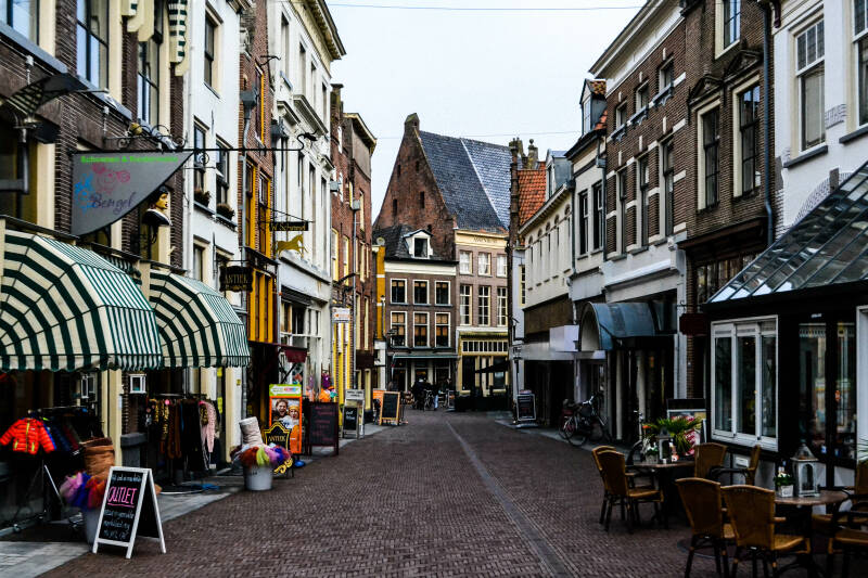 Aan de grens van de Zaadmarkt kun je een poortje doorlopen . Je loopt dan onder de Drogenapstoren door. De poort is gebouwd als stadspoort. De toren heeft zijn naam te danken aan Tonis Drogenap, die er woonde. Op de foto rechts een karakteristiek straatje in Zutphen.