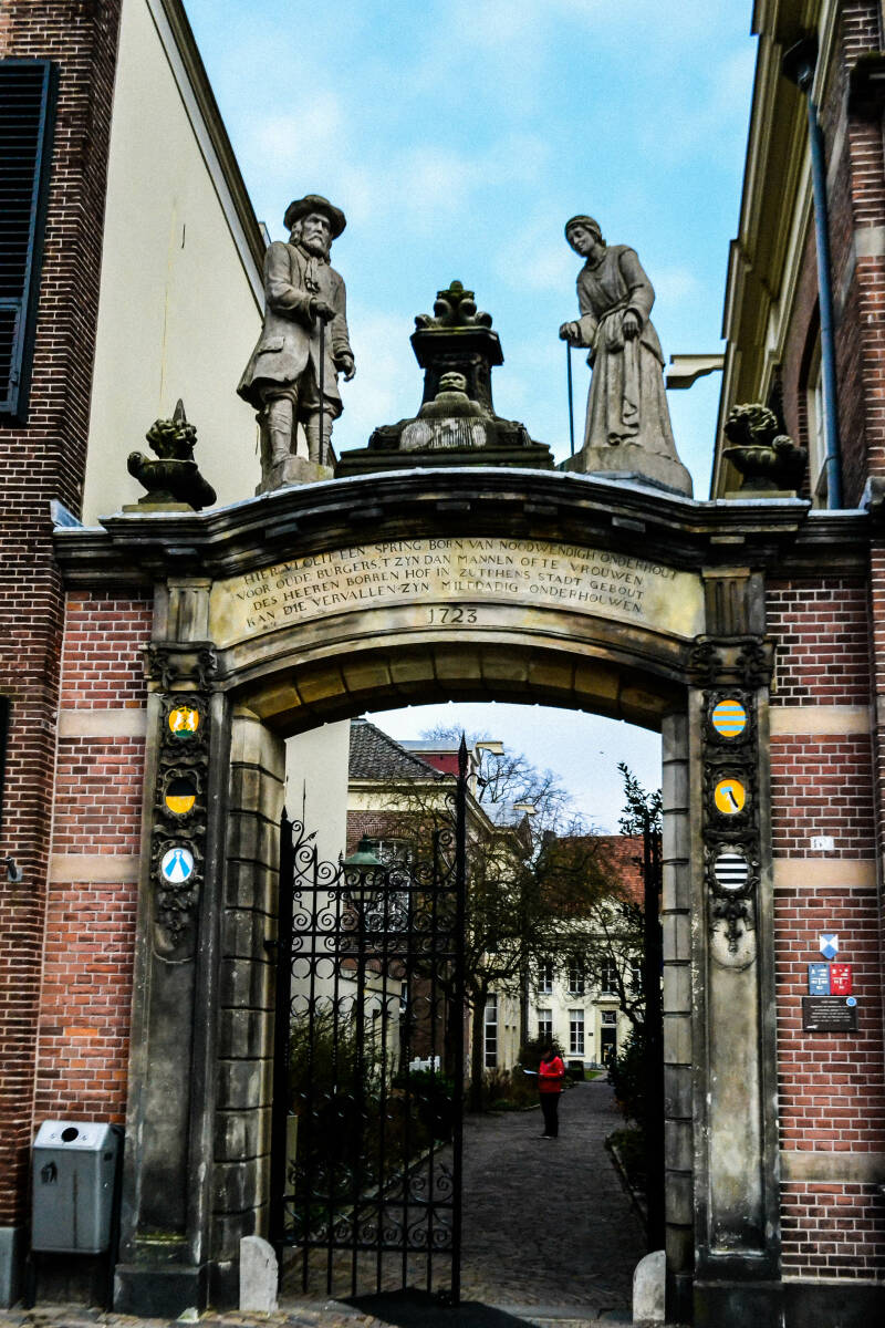 Deze poort uit 1723, met tekst en beelden geeft toegang tot het begijnhof van Zutphen. Je bereikt het ook via de Zaadmarkt.