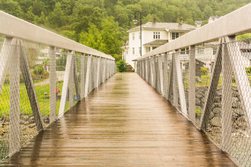 Loopbrug in Esbjerg(Noorwegen) bij nat en mistig weer.