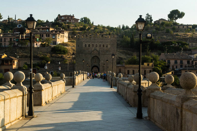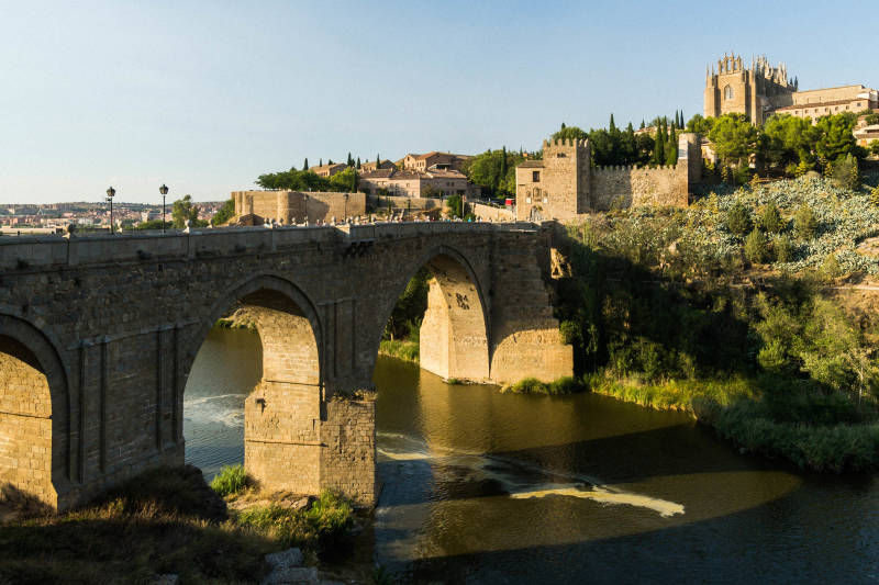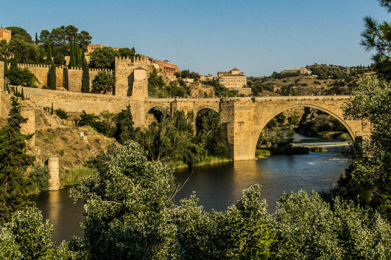 Deze Puente de San Martin is een middeleeuwse brug over de rivier de Taag in Toledo, Spanje. de brug heeft 5 bogen, waarvan de grootste, in het midden, een overspanning van 40 meter heeft. De brug geeft toegang tot de middeleeuwse stad Toledo.