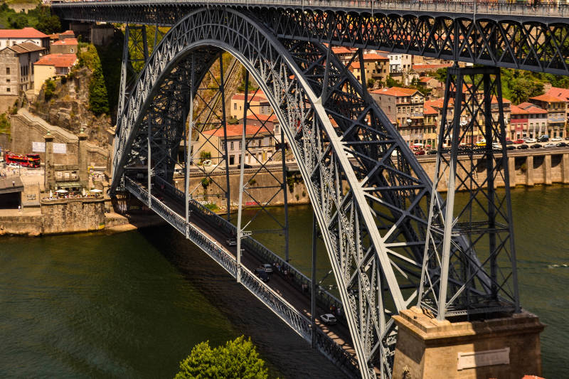 Ponte Luiz in Porto(Portugal). Deze brug heeft 2 verdiepingen. De trein rijdt boven, de auto's rijden onder. Ze verbinden de onder - en de bovenstad. deze brug is ontworpen door een leerling van Eiffel, de ontwerper van de Eiffeltoren.