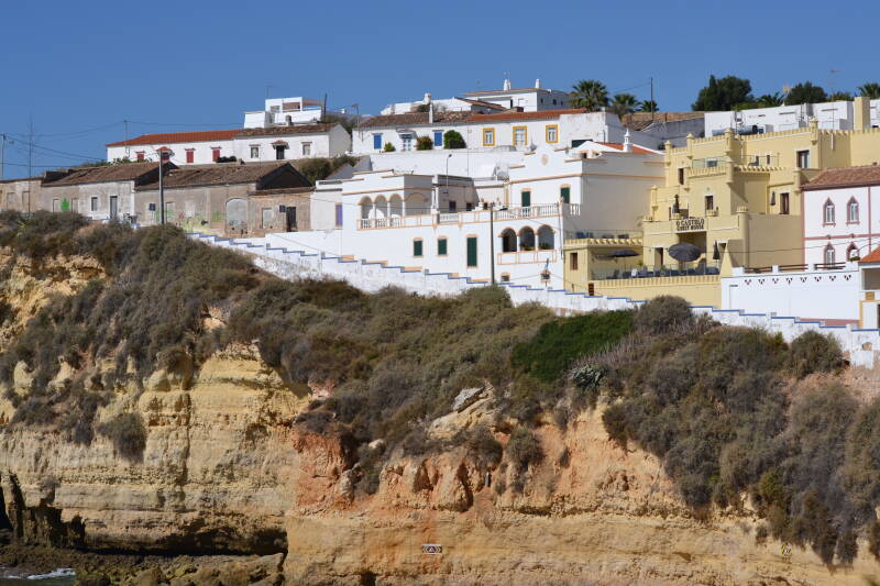 Carvoeiro, witte huizen op de kenmerkende kliffen.