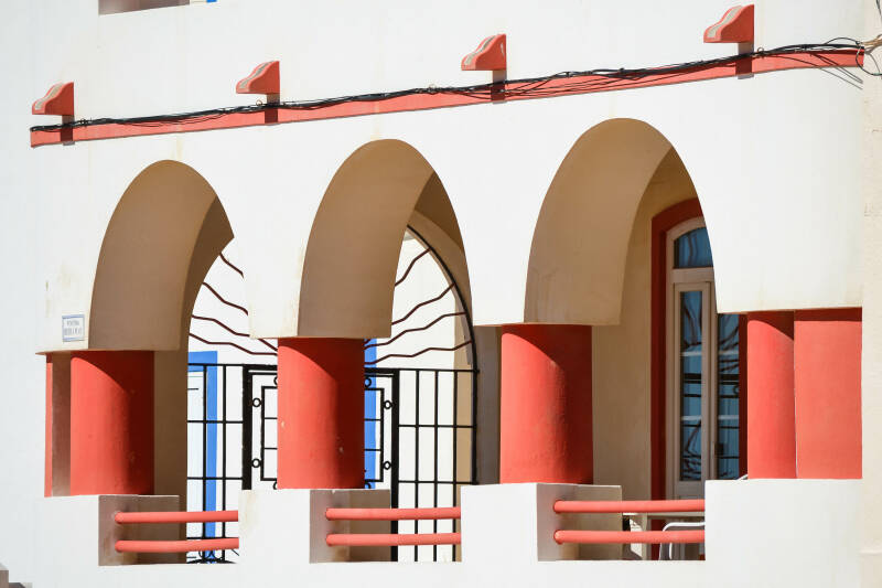 Kleurrijke bogen in een huis aan het strand van Carvoeiro.