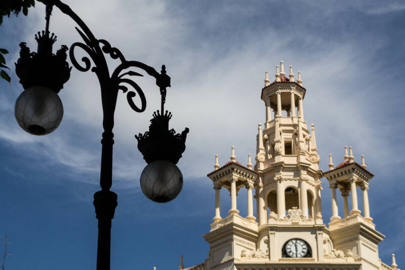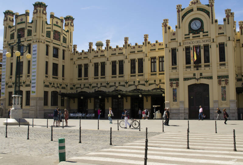 L'estacio del Nord. Het stationsgebouw in Valencia in de stijl van Art Nouveau te zien aan de vele torens en vele versieringen.