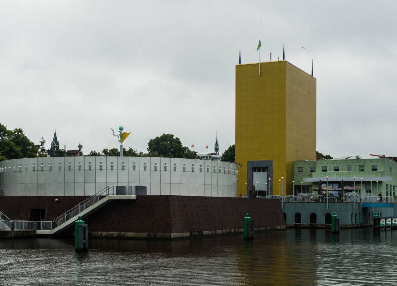 Het Groningermuseum. In 1987 ontving Groningen 25 miljoen van de Gasunie. daardoor kon een compleet nieuw museum worden gebouwd. Het ontwerp ziet eruit als een langwerpig eiland. Het verbindt de binnenstad met het stationsgebied. Het museum moest passen bij de verschillende collecties van het museum. Het ontwerp bestaat uit verschillende paviljoens die elk een eigen collectie herbergen.